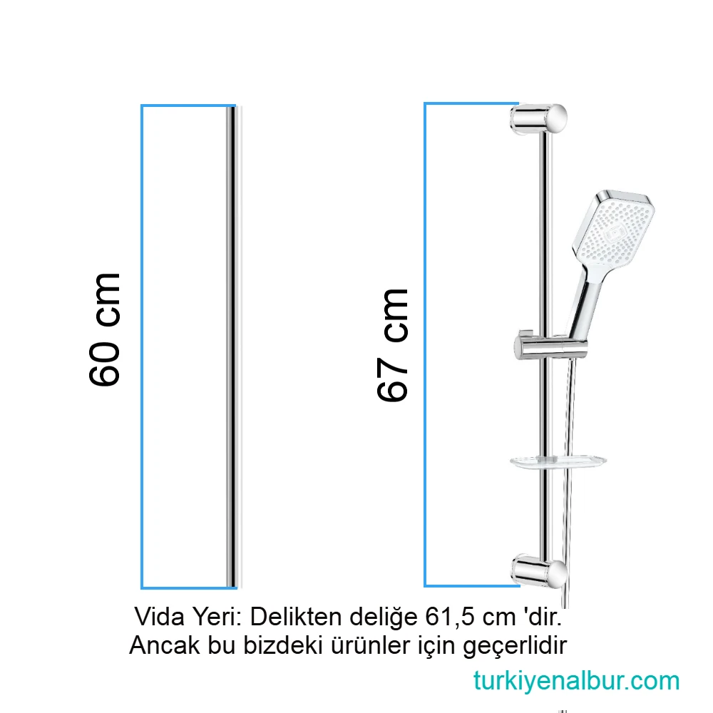 • Montaj aparatları dahil toplam uzunluk: 67 cm