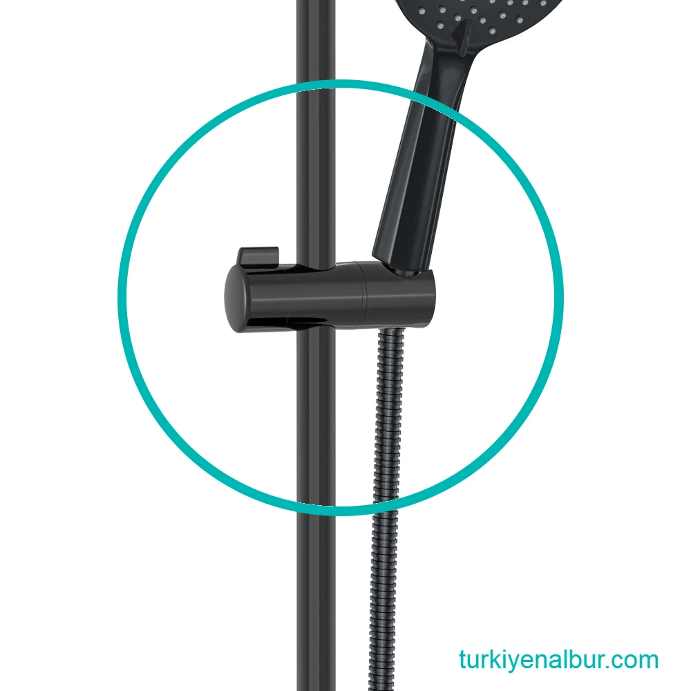 Profil Boruya Geçme Takılan Sürgülü ve Tepe Duşları İçin Siyah Slider, Mafsal, El Duşu Tutma Aparatı