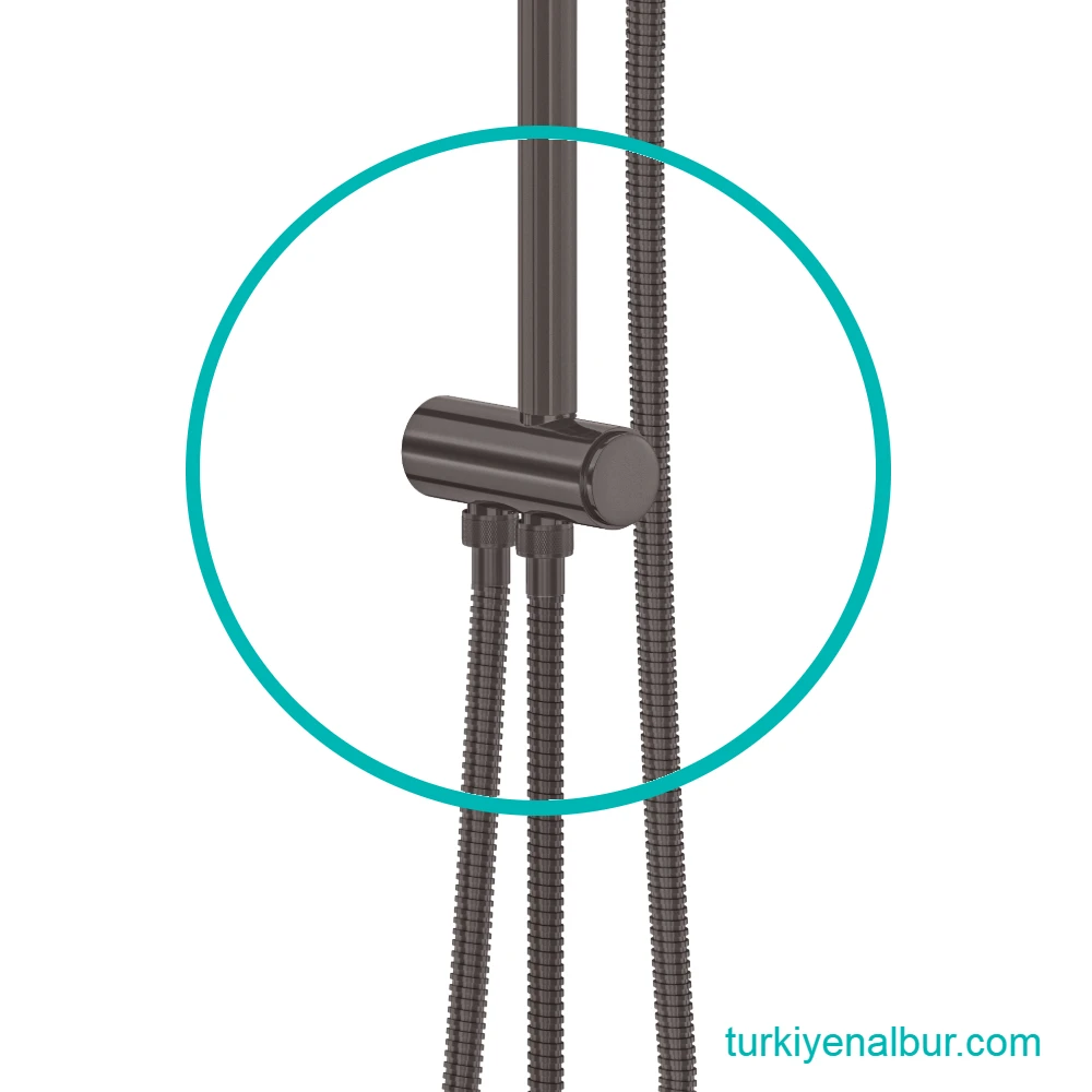 Valtemo VS-309 Art Gray (Antrasit) Duş Seti Yönlendiricisi, Valtemo duş setlerinde el duşu ile tepe duşu arasındaki su akışını pratik ve kontrollü şekilde yönlendirmek için tasarlanmıştır. Butonlu (push mode) mekanizması sayesinde duş sırasında tek dokunuşla kolay geçiş sağlar.