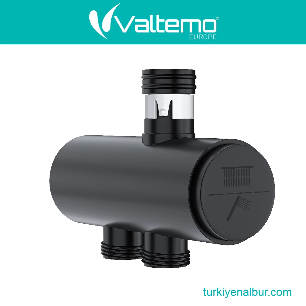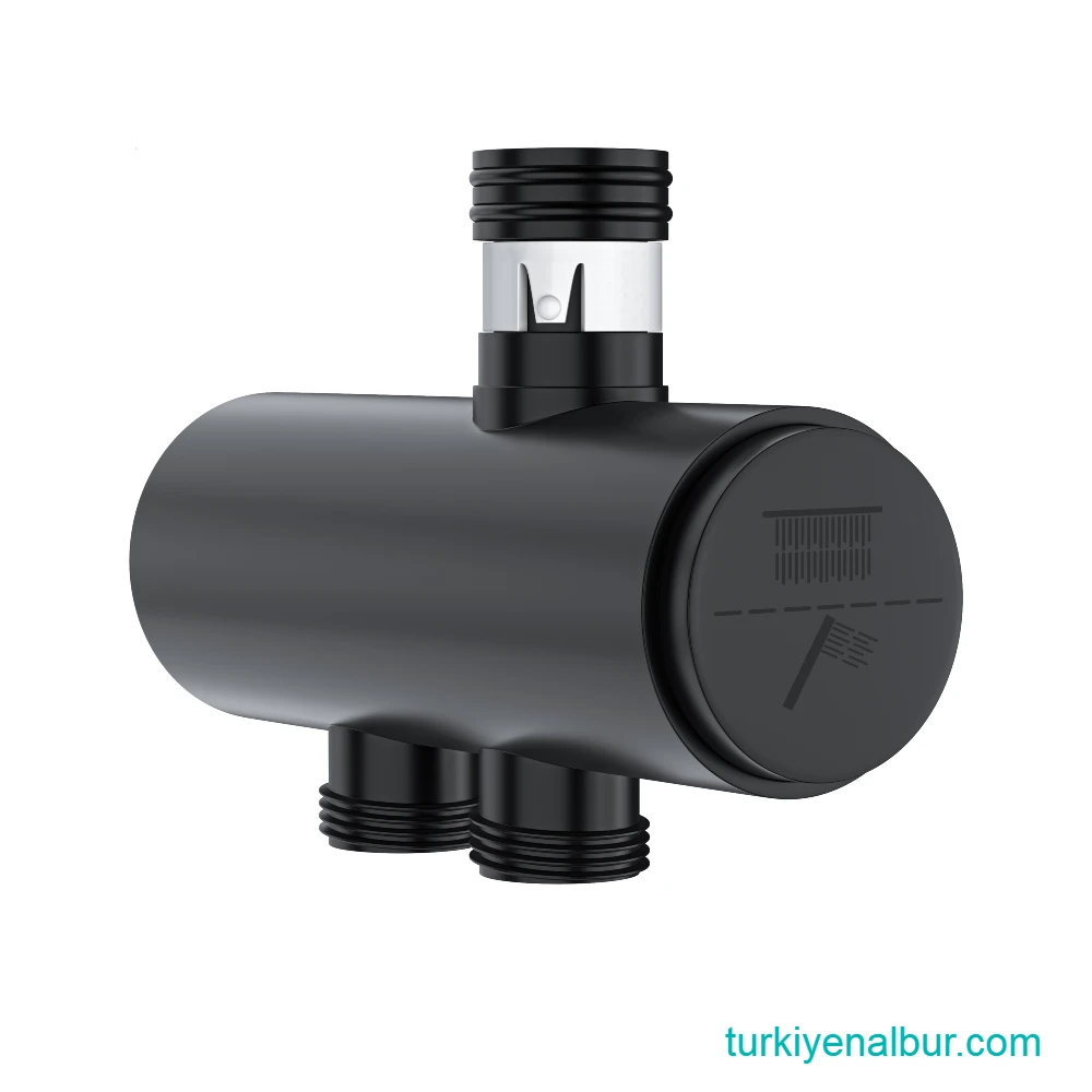 Valtemo VS-306 Siyah Duş Seti Yönlendiricisi, duş sırasında tepe duşu ve el duşu arasında kolay ve hızlı geçiş sağlayan, basmalı (push mode) butonlu bir yönlendirme parçasıdır. Yuvarlak gövde formu ve mat siyah kaplamasıyla Valtemo duş setleriyle estetik bütünlük sağlar.