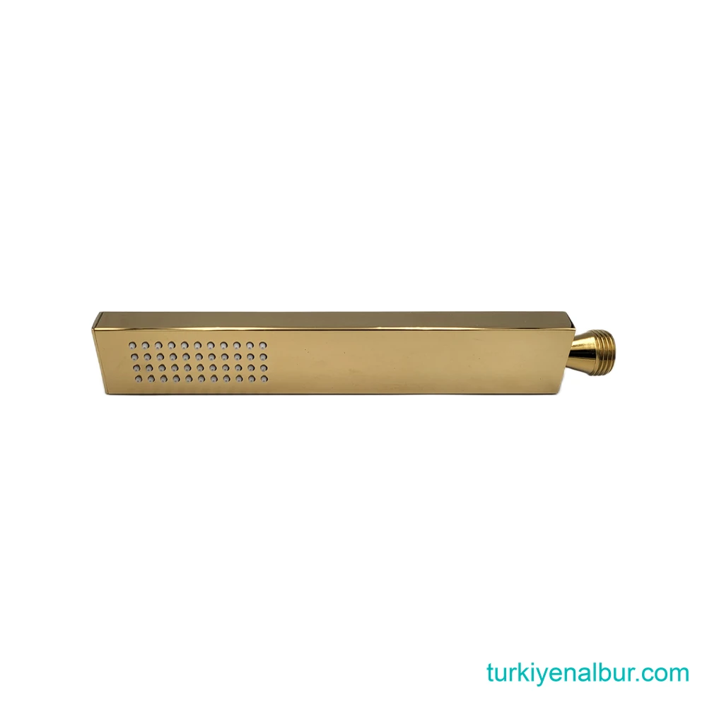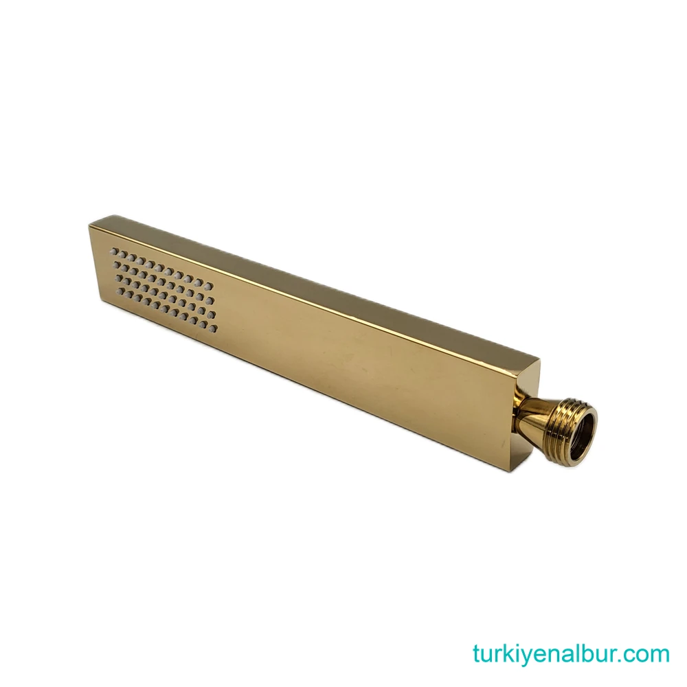 Valtemo Fineart Shiny Gold el duşu, full pirinç metal gövdesi ve slim dikdörtgen tasarımıyla şıklık ve dayanıklılığı bir araya getirir.