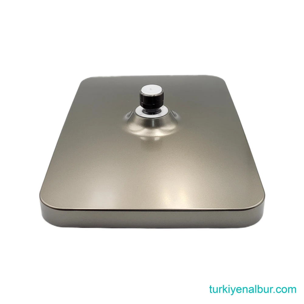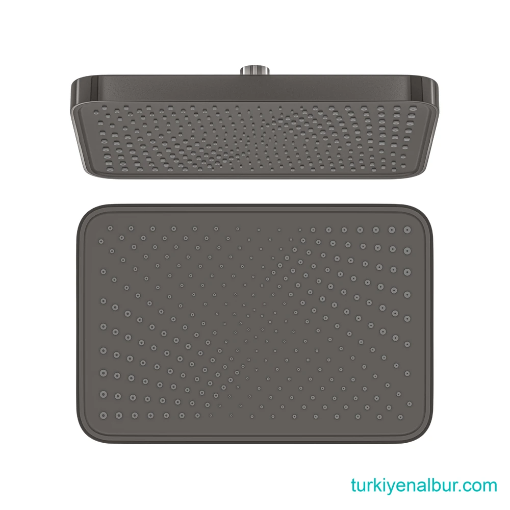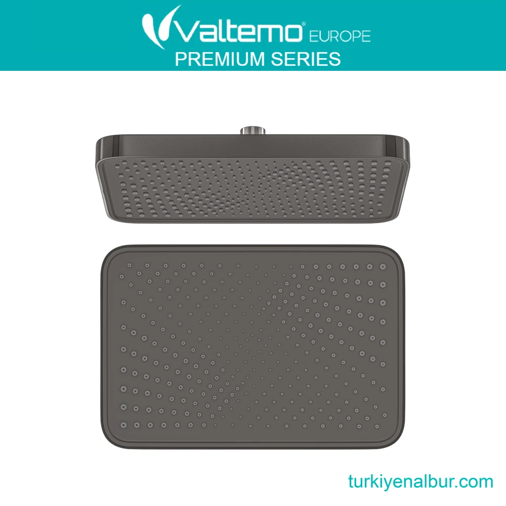 Valtemo Art Gray (Antrasit) Tepe Duş Seti Başlığı (VS-9491), banyosunda modern, güçlü ve dikkat çekici bir görünüm isteyen kullanıcılar için tasarlanmıştır. Geniş yüzeyli yapısı, suyun daha dengeli yayılmasına yardımcı olarak daha konforlu ve keyifli bir duş deneyimi sunar.