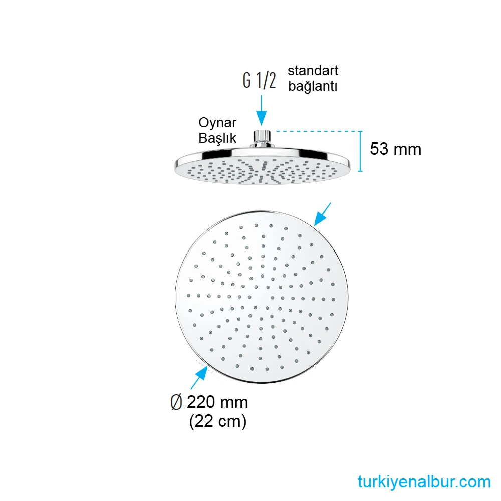• 22 cm / Ø220 mm geniş duş yüzeyi