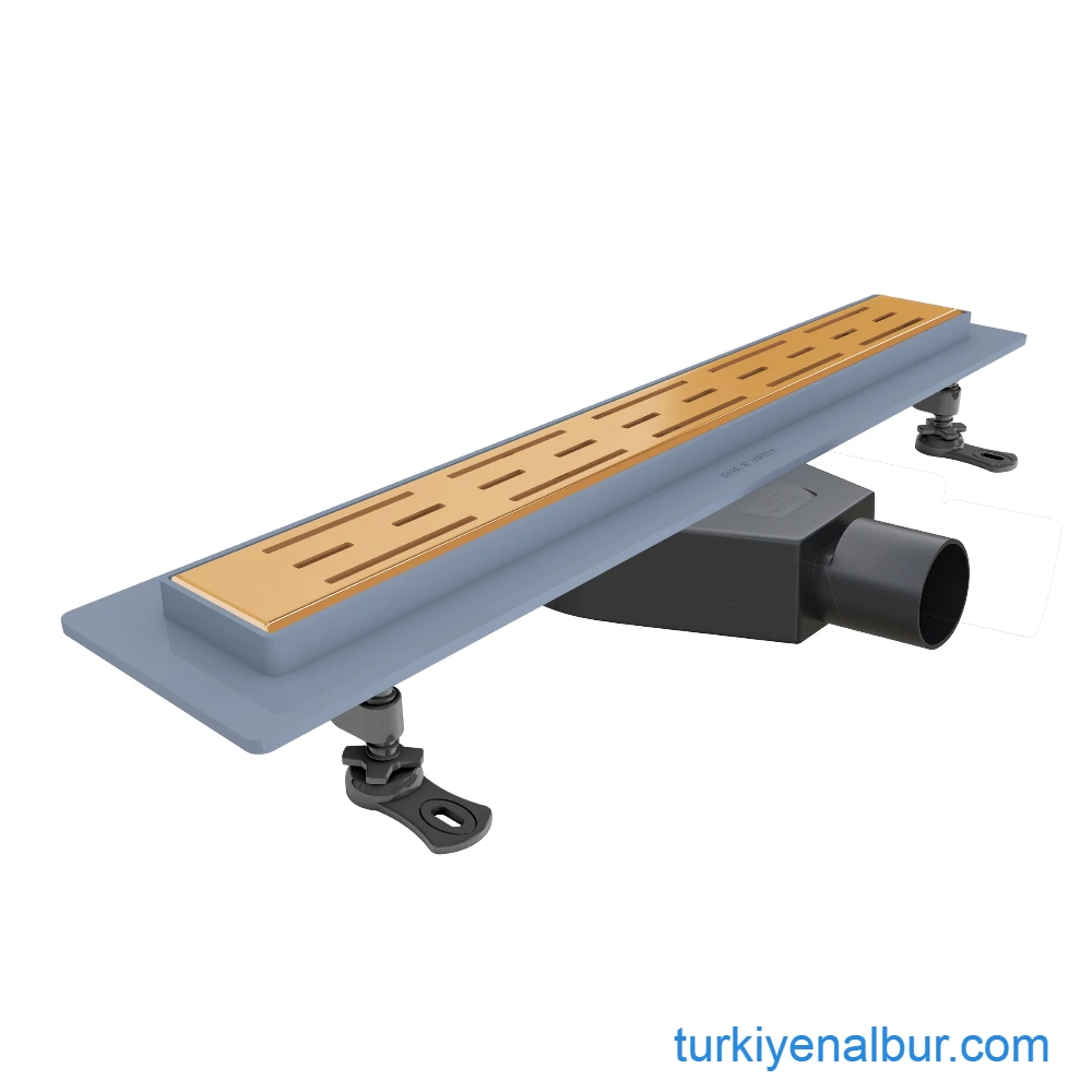 Valtemo Starline Base 60 cm Gold Duş Kanalı, banyosunda hem dekoratif hem kullanışlı bir çözüm arayanlar için ideal bir seçenektir. Gold renkli çizgi desenli üst ızgarası, duş alanına dikkat çekici ve modern bir görünüm kazandırırken farklı banyo stilleriyle uyum sağlar.