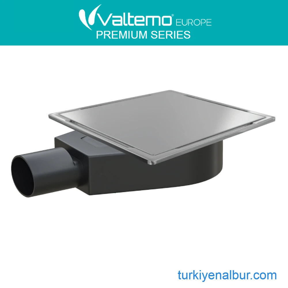Valtemo Inox-S Trendy Komple Metal Yer Süzgeci 15×15 Düz Kapak Paslanmaz Ø50 Yandan Çıkış