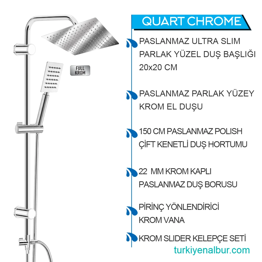 Dushlux Quart Rain Duş Seti – Pirinç Full Krom Kaplama