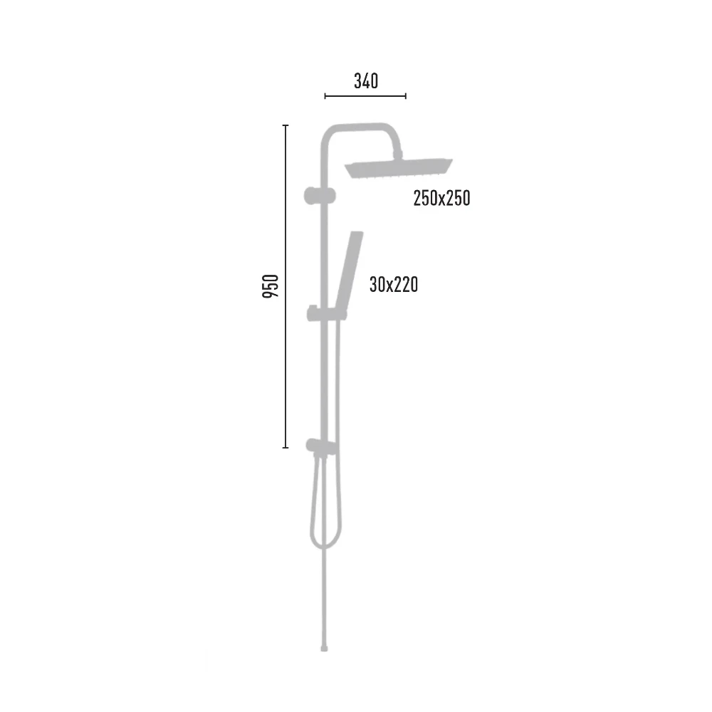 • 60 cm & 150 cm Brass nut, NeoFlex chrome shower hose (5 Years guarantee) • Ø22 mm High quality stainless steel chrome pipe • 30×220 mm chrome hand shower • 250×250 mm full chrome SS 304 shower head • PushMode chrome neo diverter (5 Years guarantee)