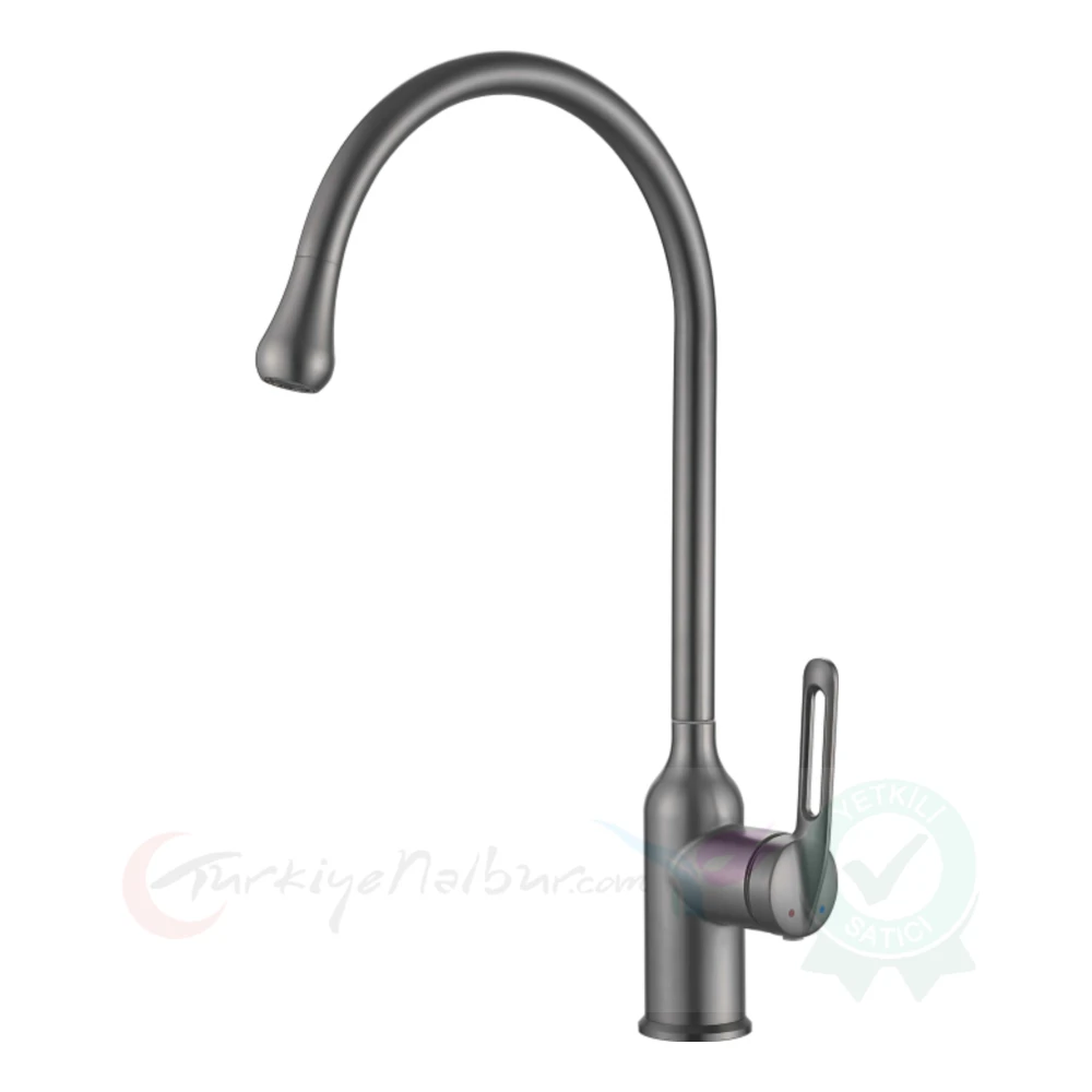 Damla Tasarım | Art Gray – Antrasit Mutfak Eviye Bataryası | Pirinç Gövde | Seramik Diskli Özel Kartuş | Kolay Montaj Seti