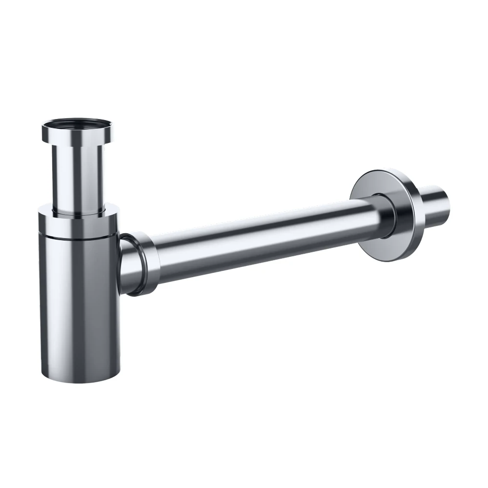 Krom kaplaması sayesinde modern banyo tasarımlarıyla uyumlu bir görünüm sunarken, açıkta kalan tesisat uygulamalarında estetik bir tamamlayıcı olarak öne çıkar. Sökülebilir alt haznesi sayesinde temizlik ve bakım işlemleri pratik şekilde yapılabilir.